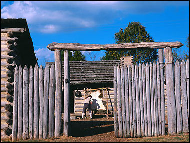 Mansker Station was established in 1780 by Kasper Mansker, long hunter and early Middle Tennessee settler. It was relocated two years later under pressure from Indian raids. The second Mansker Station survived to become an important settlement in the Southwest Territory. The current-day reconstruction is located in Moss-Wright Park, and offers an excellent living history program. |
